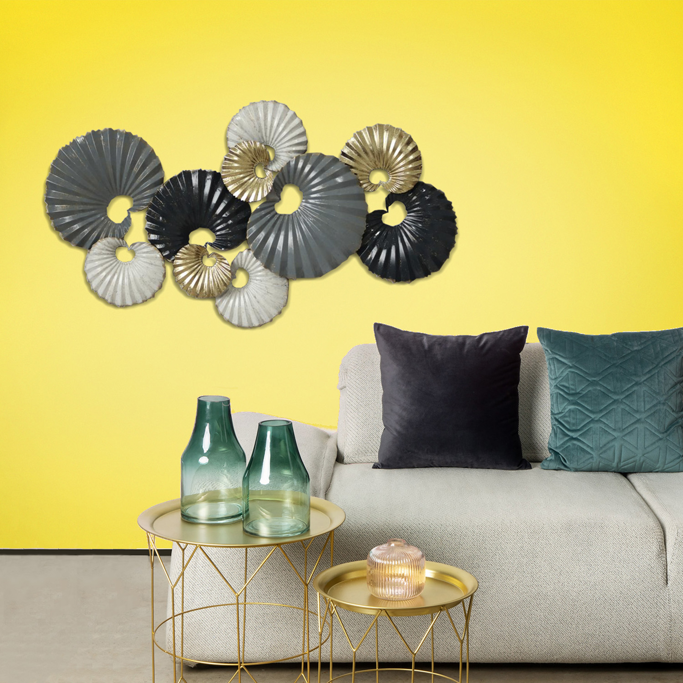 Placa mural decorativa barcelona colores grafito con gris y dorado, sus medidas son 90.8 centímetros de alto por 49.5 centímetros de largo y 5.7 centímetros de ancho, se compone de 100% hierro. la puedes ambientar horizontal o vertical en tú entrada, living, comedor, pieza o terraza. con un diseño exclusivo, especial para decorar tu hogar con estilo.