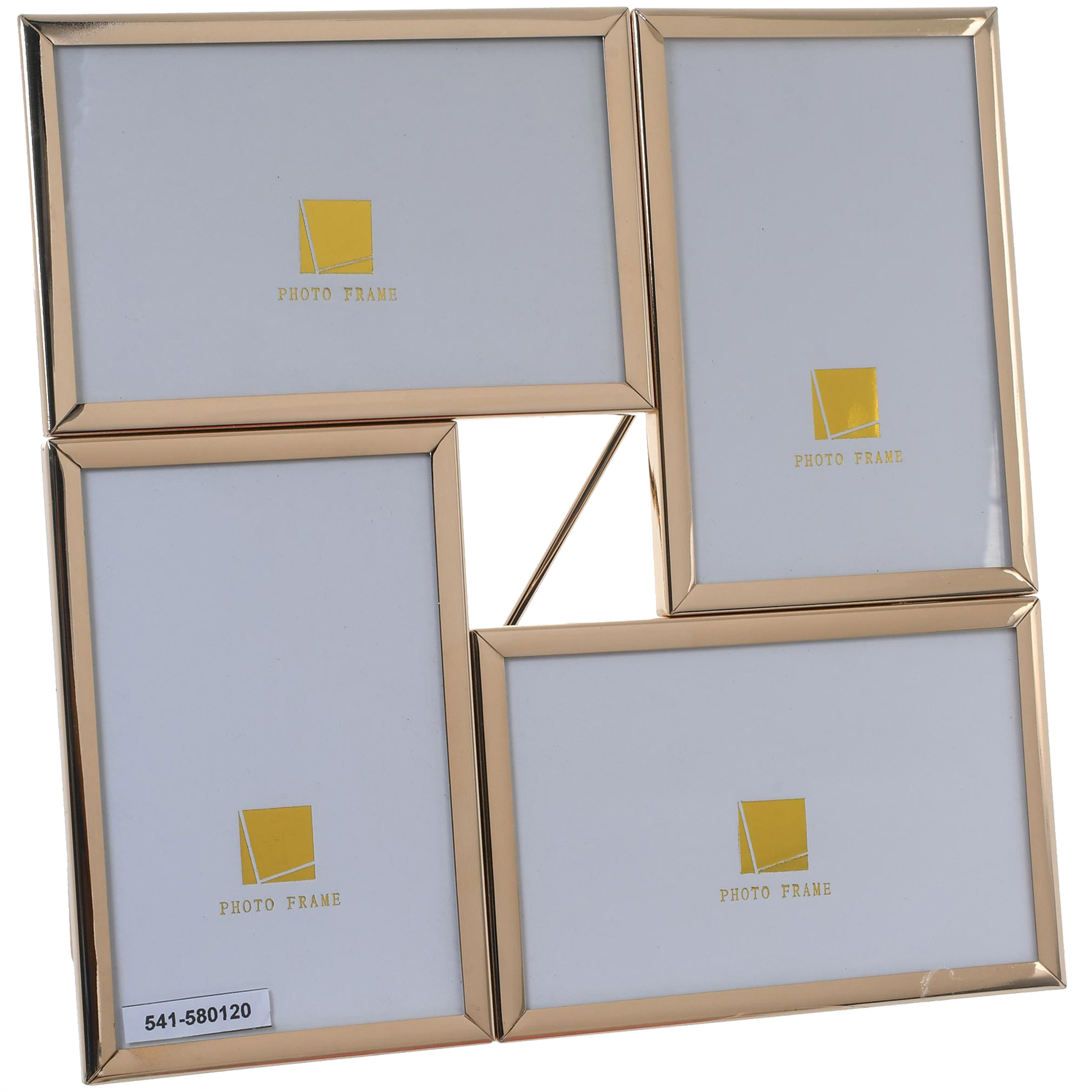 Porta retrato decorativo multiple friburgo gold de color dorado, para 4 fotos de 15 x 10 cms. las medidas del porta retrato son 25 centímetros de alto por 25 centímetros de largo y 2 centímetros de espesor. se compone de 70% metal 20% vidrio y 10% papel. con un diseño exclusivo, especial para decorar tu hogar con estilo