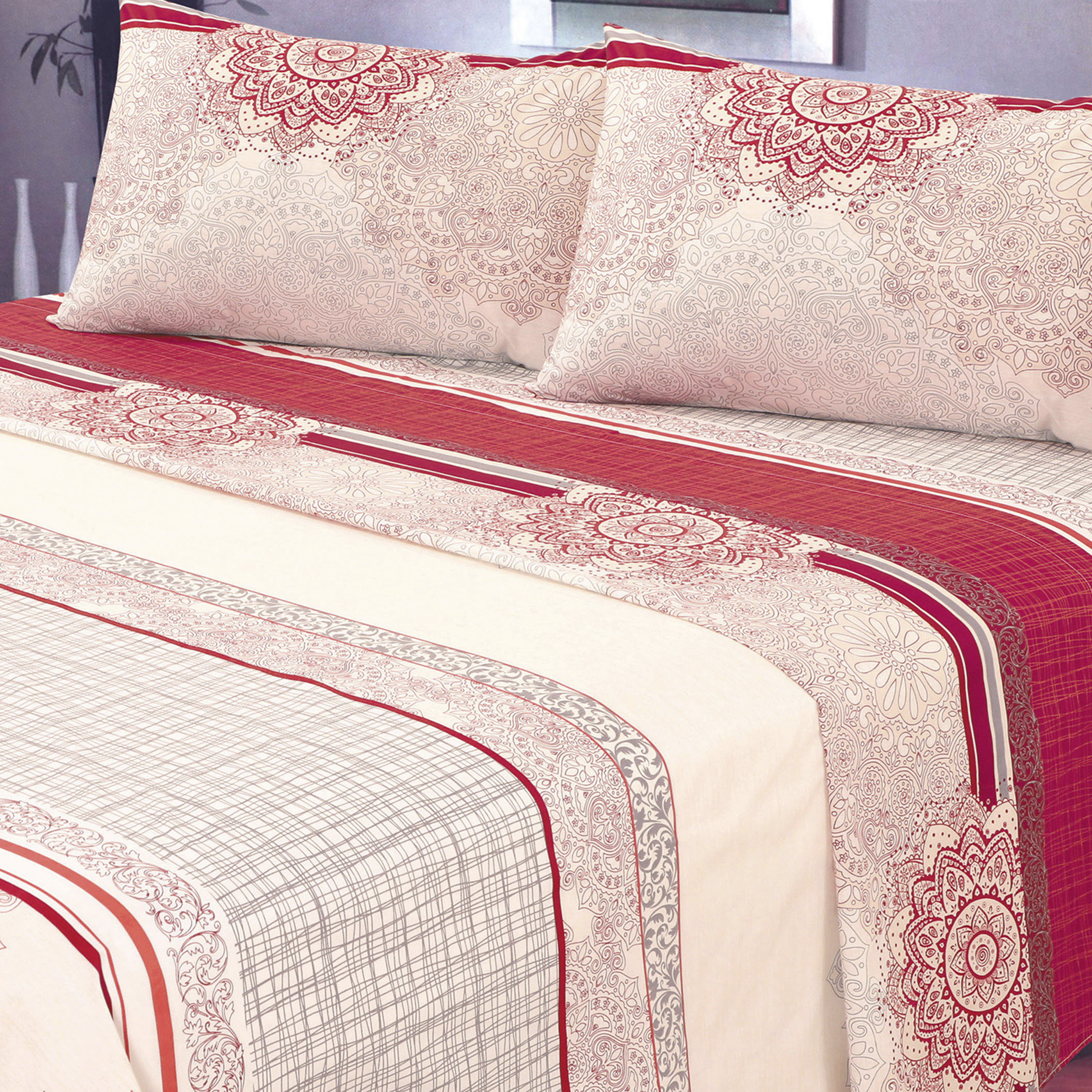 Mallorca - Juego De Sábanas T144 King Delhi Bordo