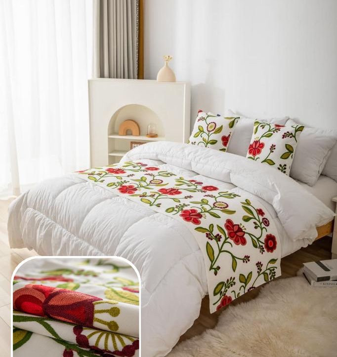 Una piecera decorativa bordada de piecera 65 x 200 cm (ancho x largo) ideal para entregarle estilo a tu dormitorio tela suave y abrigada para la temporada de otoño e invierno. solo piecera