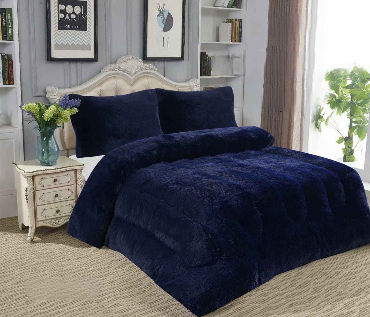 Peludo con chiporro 2 plazas azul oscuro