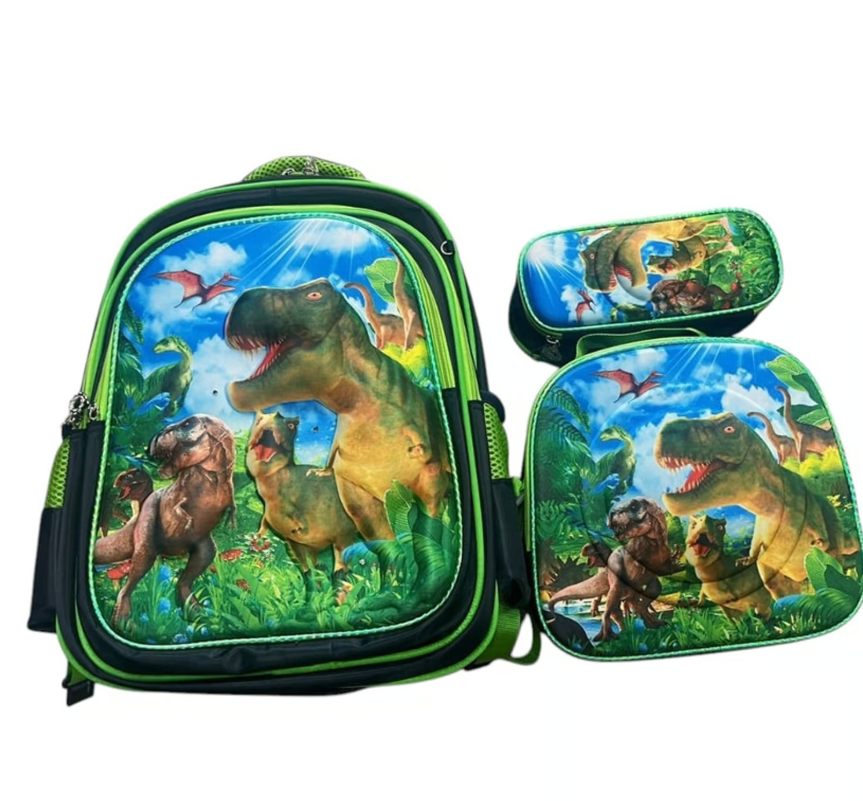Mundo Shopping - Set De Mochila Niños Escolar Diseño Dinosaurio Trex Verde | Lider Electrohogar