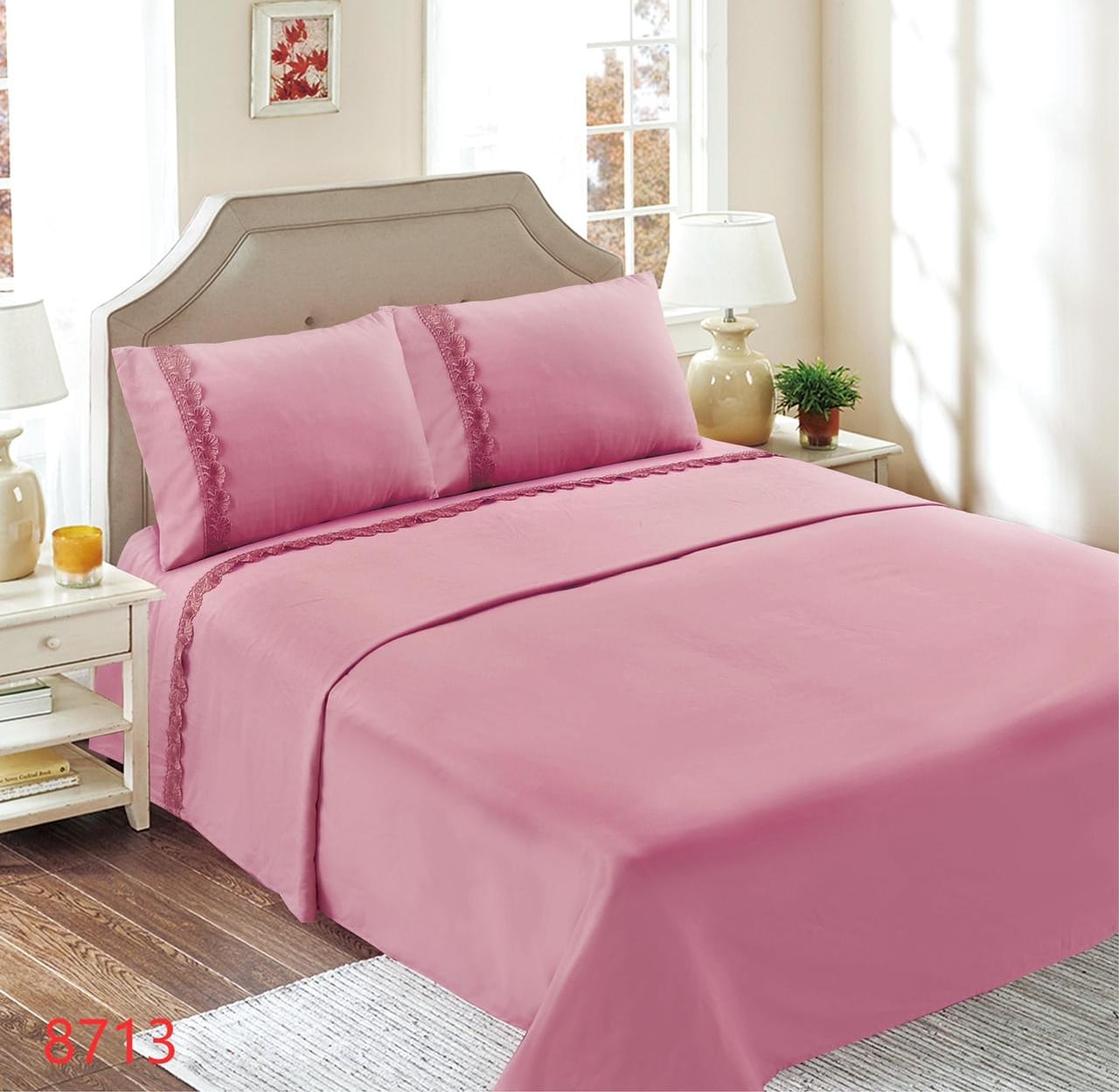 Genérico - Juego De Sábanas Con Broderíe 1.5 Plazas - Rosado M8713 | Lider Electrohogar