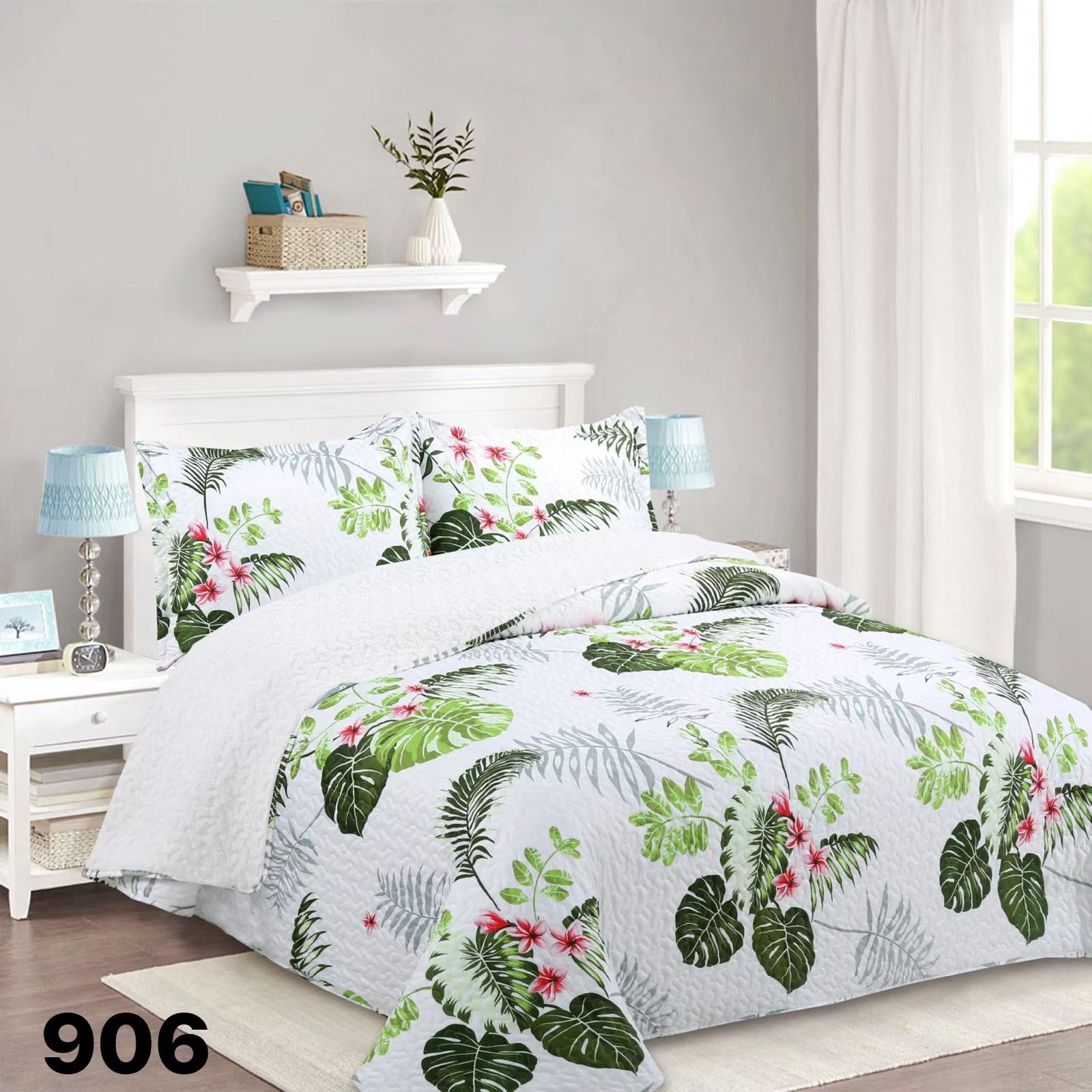 Genérico - Cubrecama Quilt Sherpa 2 Plazas - Blanco Verde Hojas M906 | Lider Electrohogar