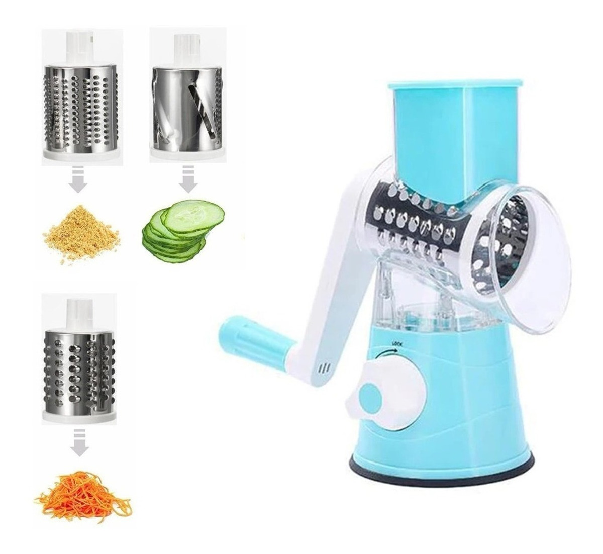 Cortador de frutas y verduras manual este rallador rotatorio te protege de las cuchillas afiladas, y todas las piezas están hechas de material sin bpa de calidad alimentaria. 1. uso seguro: el rallador rotatorio para queso se ocupa de tus manos al mantenerlas alejadas de las cuchillas cuando las usas gracias al empujador de alimentos. 2. agarres fuertes de la base de la succión: limpiar y alisar firmemente la encimera para picar sin esfuerzo. 3 tipos de cuchillas que satisfacen sus diferentes necesidades. 3. fácil de usar: la trituradora de alimentos es fácil de desmontar para una fácil limpieza. puedes limpiarlo bajo el agua corriente. material: abs + acero inoxidable tamaño: 24,5*19*12,8 cm 3 barriles de cuchillo, rebanadas, trituradas, molidas, por ejemplo: patatas, pepinos, zanahorias, cacahuetes molidos, ajo característica: 1. barril de tornillo transparente, barril de tornillo hecho de material transparente de alta calidad es más hermoso 2. la ventosa de goma succiona en la mesa y se adapta perfectamente para evitar el movimiento 4. eficiencia súper alta, despídete de la tabla de cortar plana, 1 cuchillo para rodillo estéreo multicuchilla 5. resistente y anticaída, el material de alta calidad es duradero y resistente a la compresión 6. corta las verduras a mano, agita el mango y corta fácilmente las rebanadas sin dañar las manos. paquete: molde 3 uds (cortado, triturado, molido) 1 ud. cortador de verduras basculante manual