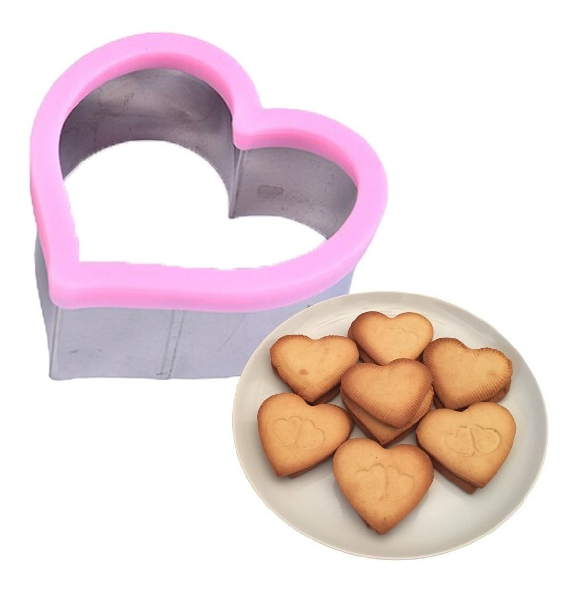 Cortadores de galletas corazon - color: rosado-plateado. - material: acero inoxidable. - medidas en las imagenes - ideal para cortar masa para galletas, masa de fondant y arcilla artesanal. los niños disfrutan de juegos divertidos. - fácil de usar y limpiar. - se utiliza para hacer galletas, chocolate, etc. - diseño bonito. - decora tus galletas o pastel. el paquete incluye - 1 moldes de galletas.