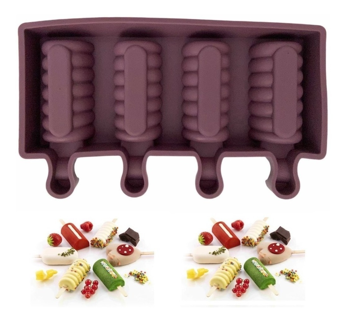 Molde con 4 cavidades para mini paletas - material: silicona. - utiliza el molde para hacer barras de helado. - es reutilizable, antiadherente, suave, fácil de desmoldar y limpiar. - ideal para realizar paletas de helado para niños, familias, fiestas, vacaciones, reuniones, cumpleaños. - se puede utilizar con yogur, zumo, chocolate y mucho más. -no incluye paletas.