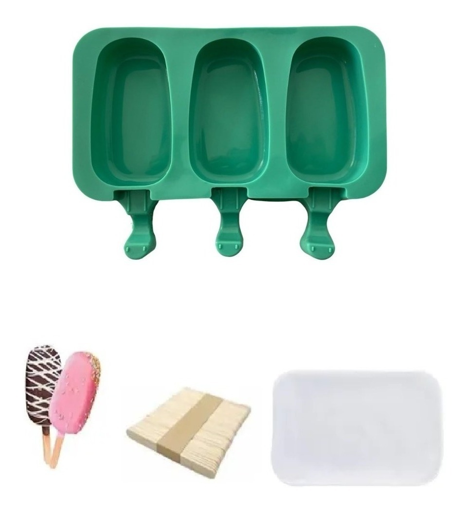 Molde para 3 paletas + 50 palos de helado. - material: silicona. - medidas del molde: 14,6cm ancho x 20cm largo x 2,6cm profundidad. - medidas de la paleta: 4,7cm ancho x 9cm largo x 2,6cm profundidad. - incluye 50 palos para helado. - incluye tapa. - utiliza el molde para hacer barras de helado. - es reutilizable, antiadherente, suave, fácil de desmoldar y limpiar. - ideal para realizar paletas de helado para niños, familias, fiestas, vacaciones, reuniones, cumpleaños, revelación de sexo. - se puede utilizar con yogur, zumo, chocolate y mucho más. el paquete incluye: - 1x molde para 3 paletas. - 1x tapa para el molde. - 1 paquete con 50x palos de helado.