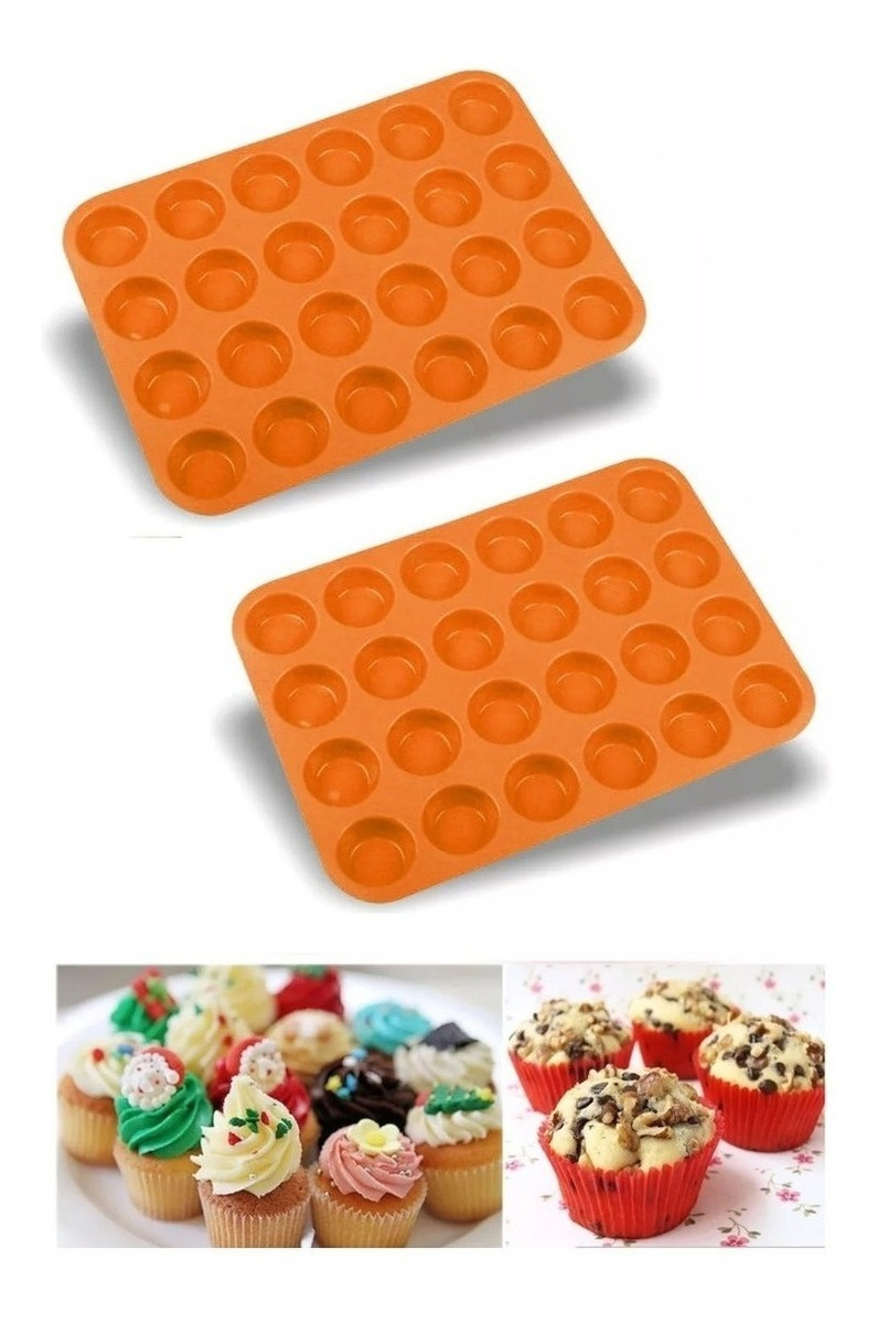 Pack de 2 moldes de silicona de 24 mini cupcakes - material: silicona. - medidas: 33x22cm - profundidad: 2,2cm. - diámetro: 4,6cm. - 24 compartimentos. - excelente molde para cupcakes, jabón, tartas y otros usos. - fácil limpieza y almacenamiento. - resistente a manchas. - ideal para hornear. - uso: mini cupcakes.