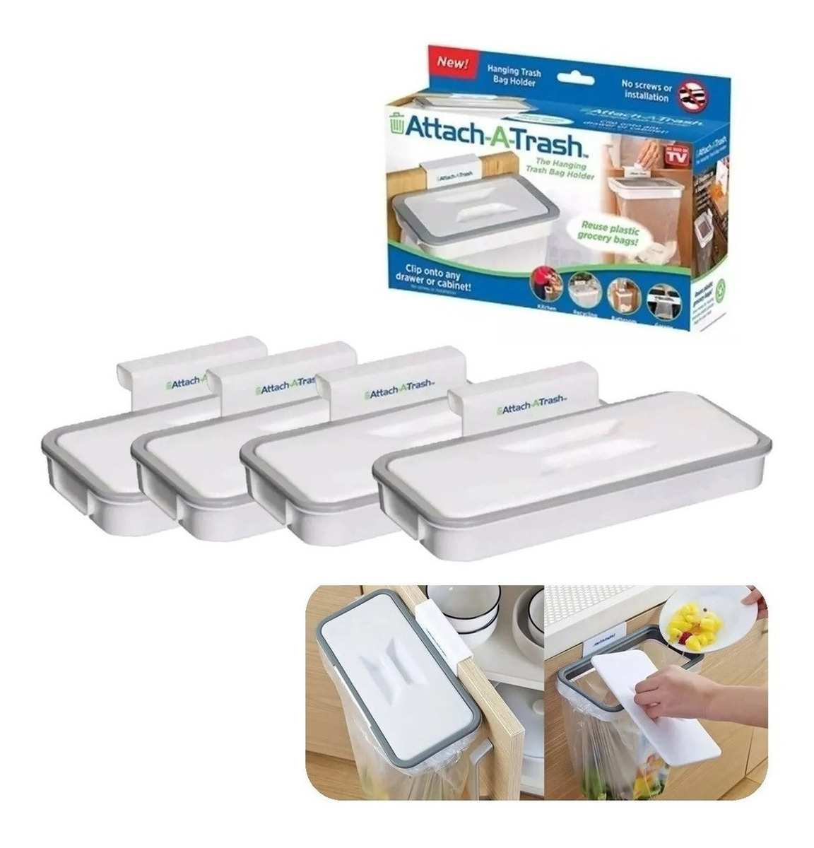 Pack 4 basurero papelera portatil ergonomica attacha-trash cómodos fácil de usar los puedes colgar en cualquier gabinete con tapa para que no despida olor medidas 24cm x 12cm x 5cm
