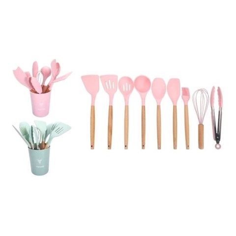 Estilodomus - Set 13Pcs Utensilios De Cocina De Silicona Antiadherentes Rosa