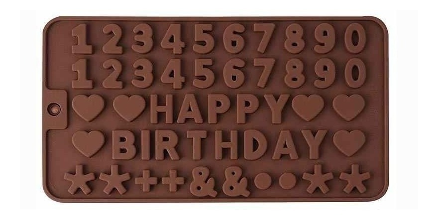 Molde de silicona medidas 21cm de ancho x11,5cm altura0,5cm. forma de letras "happy birthday", signos y números de la foto. fácil limpieza y almacenamiento. utiliza coberturas de chocolate negro, chocolate con leche, chocolate blanco para realizar estos bombones. soporta el rango de temperaturade-40 a 230 grados celsius. se puede utilizar de forma segura en el horno, microondas, lavavajillas y refrigerador.