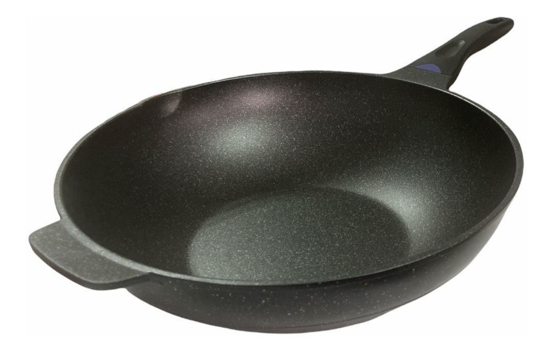 Sarten wok. medidas en la imagen color negro. materialantiadherente descubre los sabores ricos y auténticos de las cocinas chinas y asiáticas en tu propia casa. el wok de 34 cm con fondo plano está especialmente diseñado para bloquear el jugo y el sabor dentro de los ingredientes. nuestro wok de acero al carbono está pre-sazonado a altas temperaturas utilizando técnicas especiales.