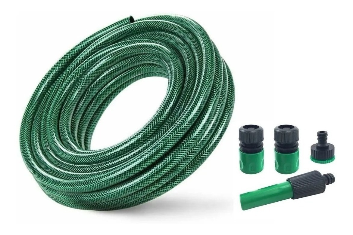Manguera 1/2” 20 metros con accesorios la manguera de 1/2" y 20 metros es ideal para su jardín y usos diversos ya que es muy manejable, fácil de enrollar y de almacenar. entre los beneficios de esta manguera, se destaca el hecho de ser liviana y de fácil manipulación. manguera diámetro1/2 pulgada largo20 metros lineales espesor nominal2.2 colorverde oscuro accesorios pistola de riego regulable para diferentes tipos de chorros acople rápido 1/2 pulgada (2) conector con acople rápido para la llave producto garantizado