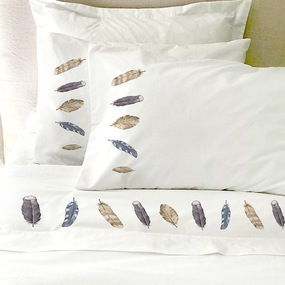 Tuyo Print - Juego De Sábanas 1,5 Pl Plumas Grises