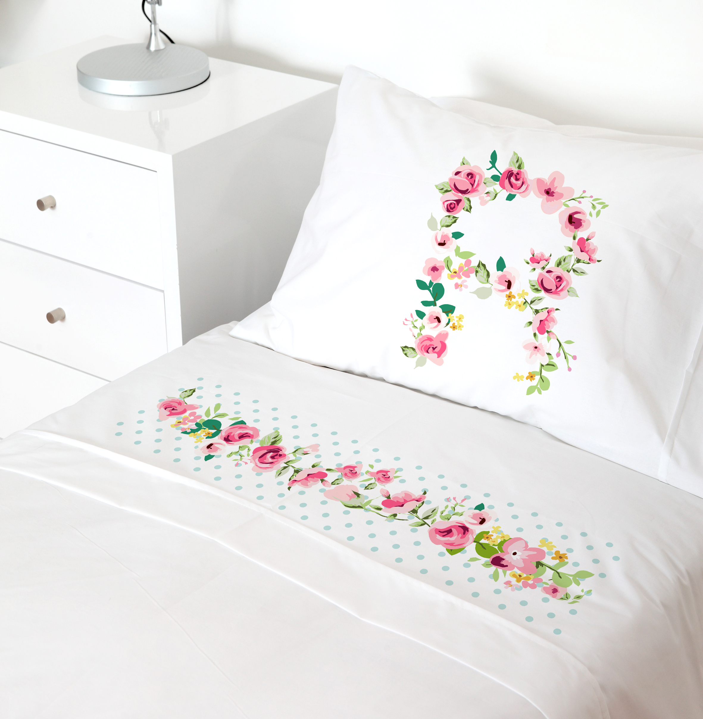 Juego de sábanas transición 200H Letra vintage R blanco