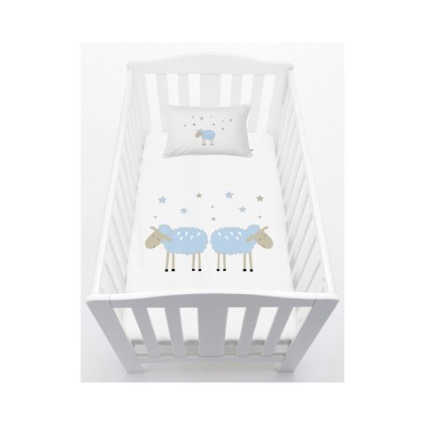 Tuyo Print - Juego De Sábanas Moisés - Colecho Ovejita Celeste