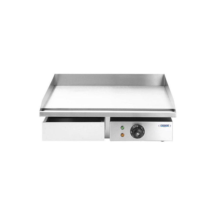 Plancha churrasquera electrica de sobremesa lisa, construccion frente, lados y respaldo en acero