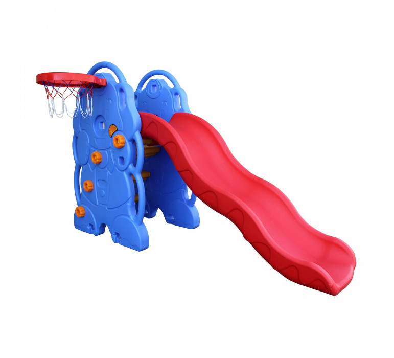 Entretenido resbalín para niños con figura de elefante. ¡este resbalín multipropósito viene con una trompita para tirar aros y con un aro de baloncesto incorporado para extra entretención! las escalas son grandes y fáciles de subir. el resbalín es de extra calidad lo que permite un uso continuo. además, es de larga duración.