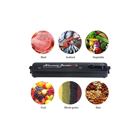 Maquina Selladora Al Vacío Alimentos 90w + 2 Rollos 28cmx5m Color Negro Vacuum Sealer