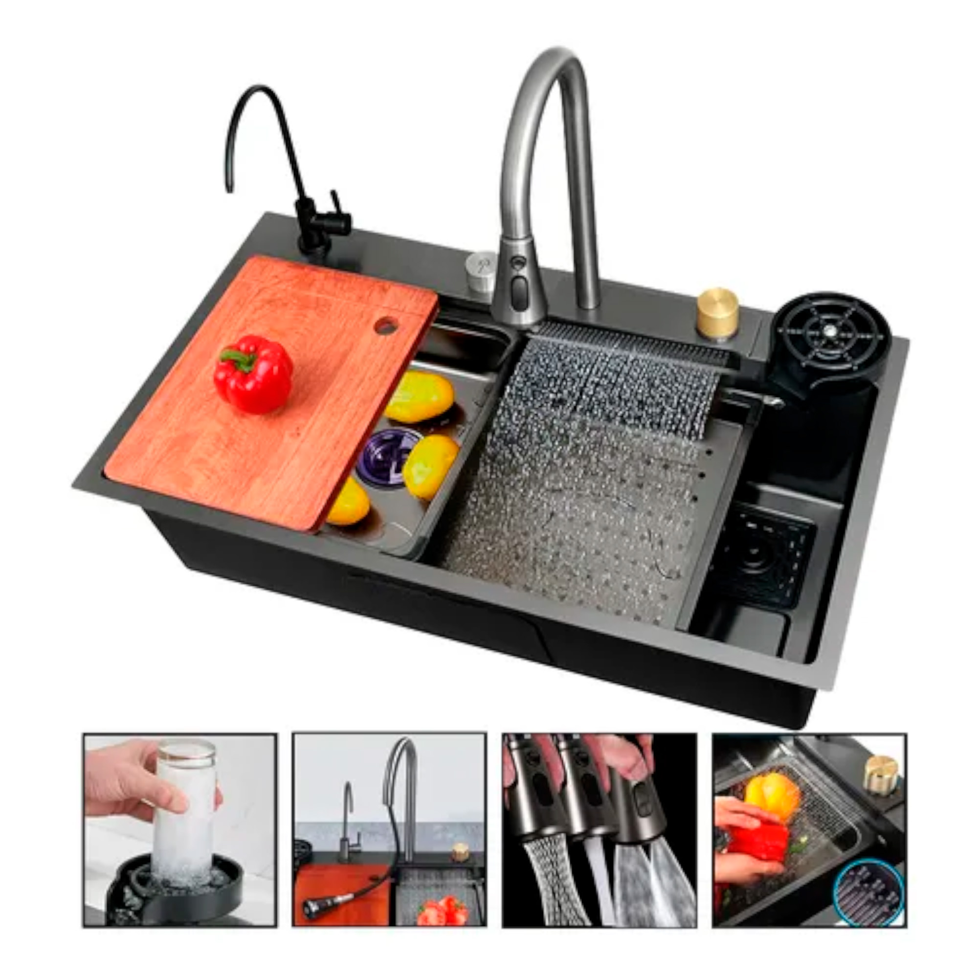 Beiti - Lavaplatos Cascada Lavavasos Llave 2 Modos 68X45 Acero Inox | Lider Electrohogar