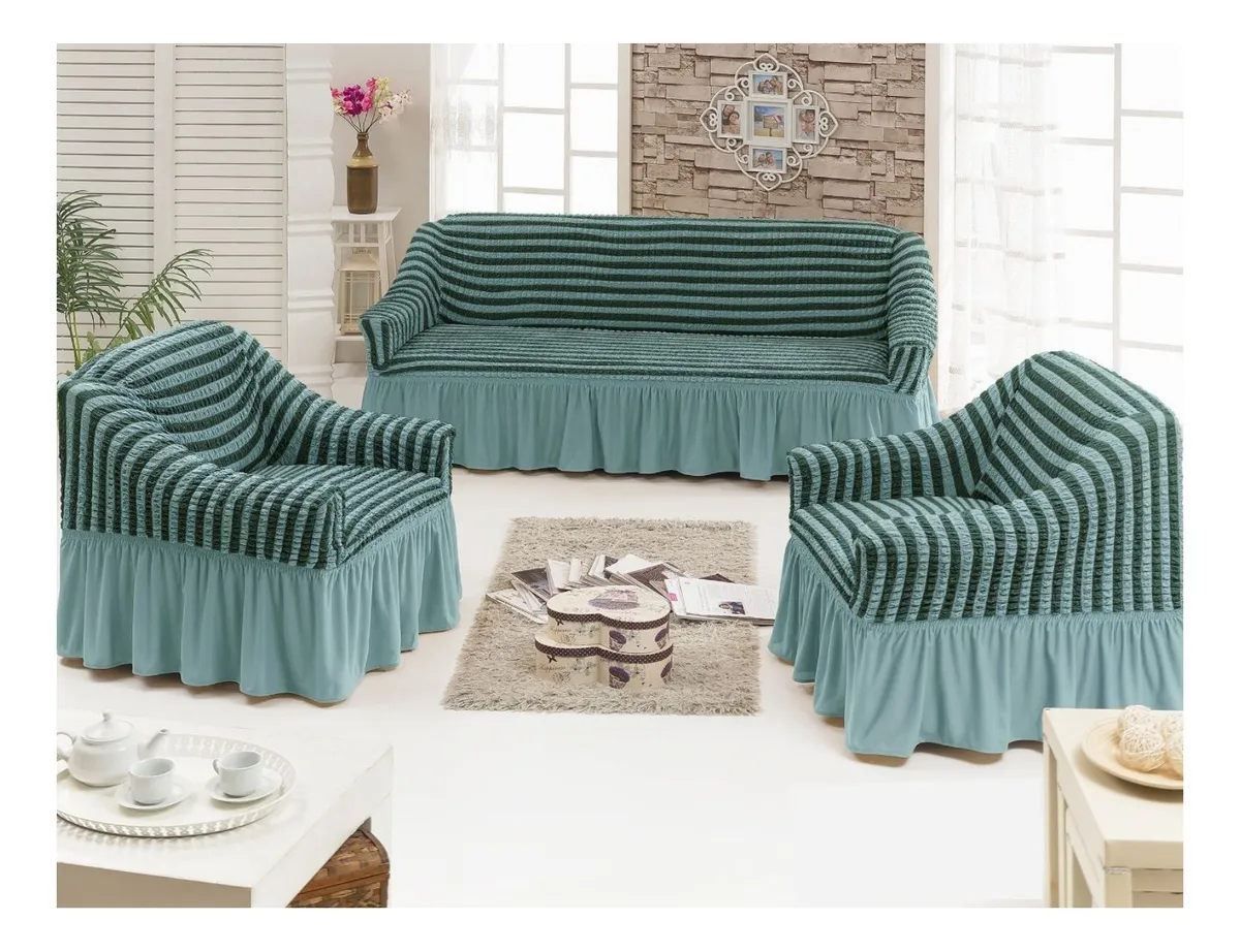 Casadeliacl - Funda Tfi Raya Kit Para Sillón 3+1+1 Líneas / Turquesa / Rayas | Lider Electrohogar
