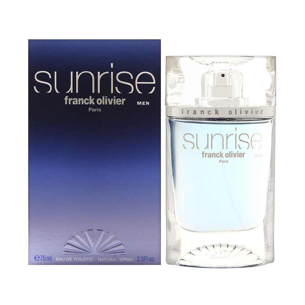 Eau de toilette en aerosol franck olivier sunrise para hombre, 2.5 onzas. sunrise men de franck olivier es una fragancia aromática amaderada para hombre. sunrise men se lanzó en 2010. - las notas altas son bergamota, mirto y lavanda; las notas medias son jazmín, hojas de violeta y salvia; las notas de fondo son sándalo, ámbar y haba tonka