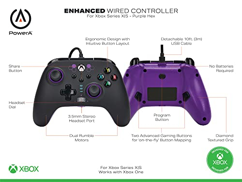 Controlador con cable mejorado powera para xbox series x|s - purple hex, gamepad, controlador de videojuegos con cable, controlador de juegos, xbox series x|s - xbox series x