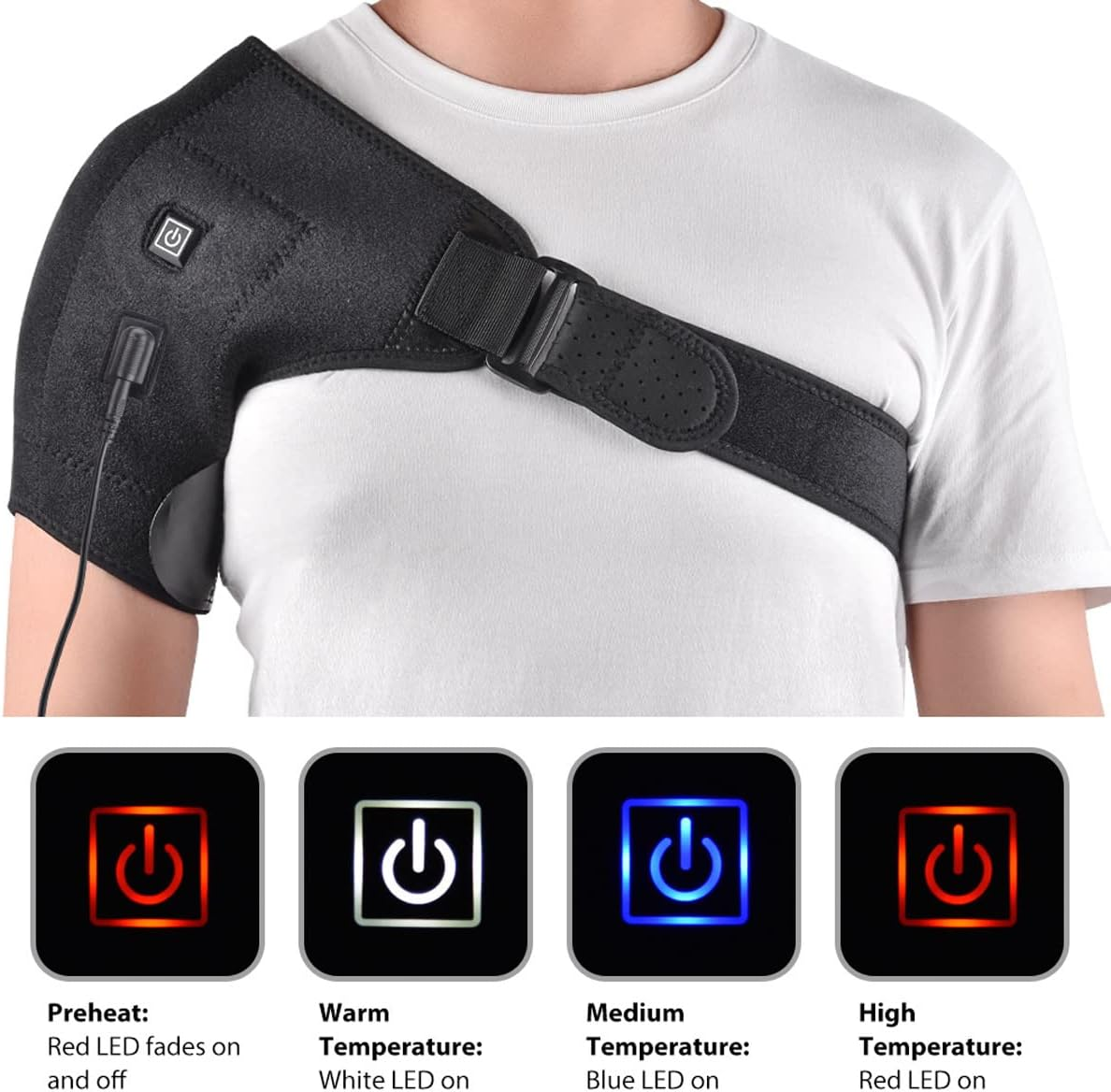 Almohadilla térmica para hombro con conexión usb 4 niveles de temperatura con indicador led material suave y transpirable correas ajustables con velcro compatible con fuentes usb alivia dolor muscular y rigidez diseño ergonómico para uso prolongado
