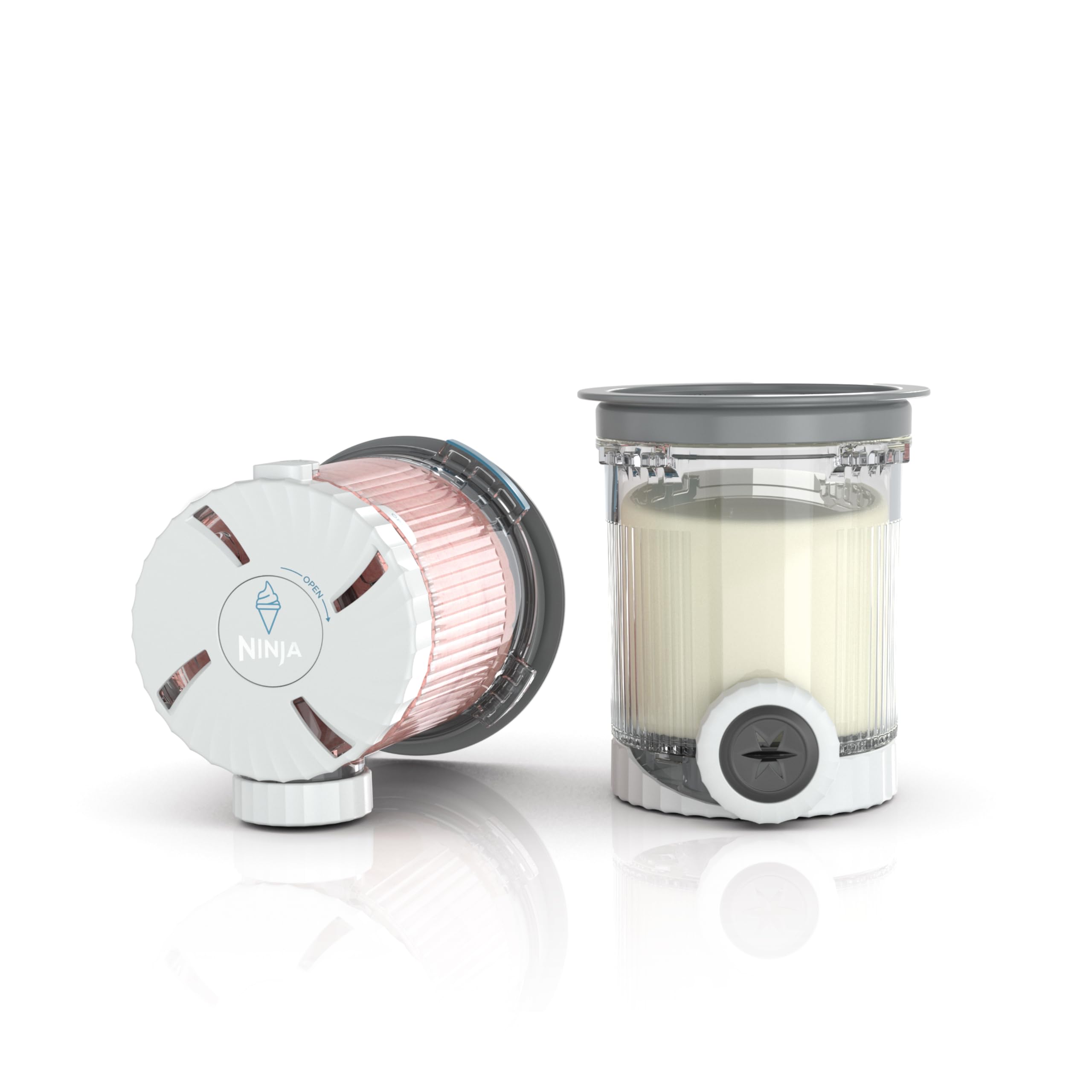 Paquete de 2 pintas y tapas compatibles con máquinas de helado ninja swirl serie nc700 y soft serve makers. fabricadas sin bpa y aptas para lavavajillas, con tapas en color gris.