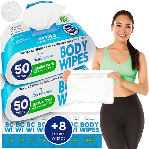 Toallitas Corporales Duracleanse Xl Para Bañar Adultos, 50 Unidades O Más, 4 Viajes