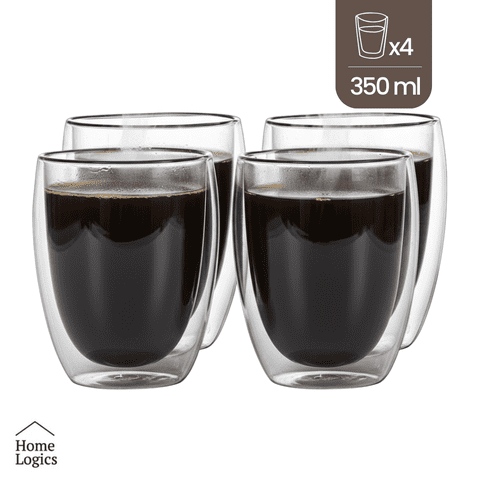 Set 4 Tazas Vidrio Doble Pared 350 Ml Home Logics 1 Un | Lider Electrohogar