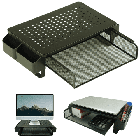 Telotenemos - Base Soporte Metálico Monitor Pc Notebook Cajón Organizador Negro | Lider Electrohogar