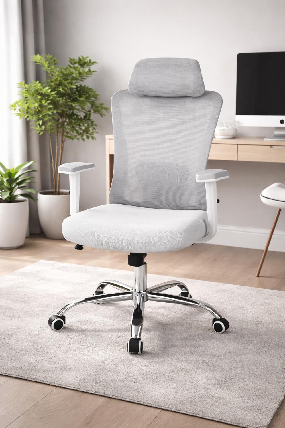 Dale un toque moderno y profesional a tu espacio de trabajo con esta silla de oficina ejecutiva ergonómica gamer houston diseñada para ofrecer comodidad, estilo y durabilidad. su tapizado en malla mesh permite una excelente ventilación, ideal para largas jornadas frente al escritorio. cuenta con patas cromadas de alta resistencia, brazos regulables, base de pvc y 5 ruedas negras que garantizan un desplazamiento suave y estable. además, es giratoria, lo que facilita el movimiento y mejora la productividad. su reposacabezas en malla tiene ajuste de altura y ángulo, además de ser un material muy resistente, asegura una correcta ventilación. perfecta para oficina, home office o estudio. características principales: tela de malla mesh transpirable. base de pvc resistente. patas cromadas con 5 ruedas de alta movilidad. asiento giratorio 360°. diseño ergonómico y confortable. medidas: ancho: 66 cm. largo: 50 cm. alto: 108 cm (sin reposazabezas) - 122 cm. ancho silla: 52cm. alto brazo regulable: 28 - 37 cm. peso: 12 kg. color: gris claro (detalles blancos). ¡una silla moderna, funcional y lista para acompañarte cada día!