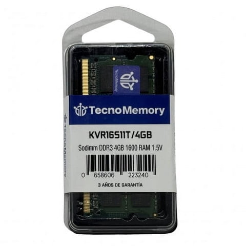 Memoria Ram Tecnomemory Sodimm Ddr3 4Gb 1600Mhz Kvr16S11T/4Gb | Lider Electrohogar