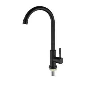 Monomando de cocina con caño alto en forma de “c” fabricado en materiales resistentes con acabado negro mate