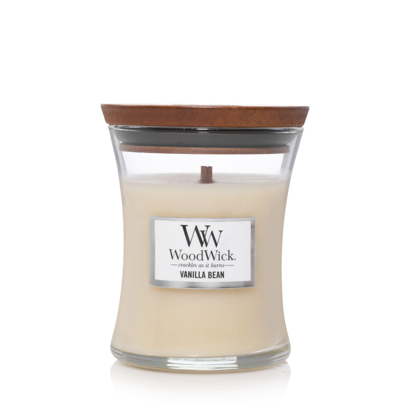 Medium jar las velas woodwick® con silueta de reloj de arena mediano llenan su hogar con el suave crujido y los aromas acogedores y una mecha de madera natural que se agrieta mientras arde ™. el crepitar relajante de una vela woodwick® es creado por una tecnología patentada pluswick®, diseñada para garantizar una experiencia de crepitación segura y consistente para una fragancia más rápida y un mejor quemado mientras perfuma su hogar con el sonido relajante de un fuego crepitante. contenido: 9.7 oz (275 g) altura: 11.4 cm diámetro: 9.7 cm peso aprox.: 645 g vanilla bean relájate con el calor y natural aroma de vainas de vainilla puras. ingredientes: vainas de vainilla.