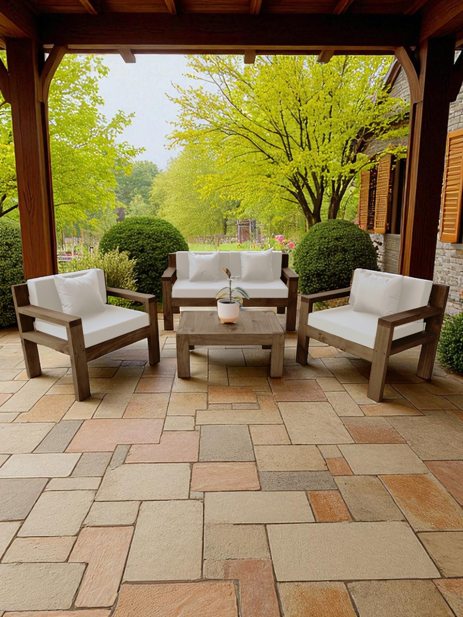 Miaruste - Terraza Rústica Modelo Ambar 4 Cuerpos Color Madera Roble Cojinería Crudo | Lider Electrohogar