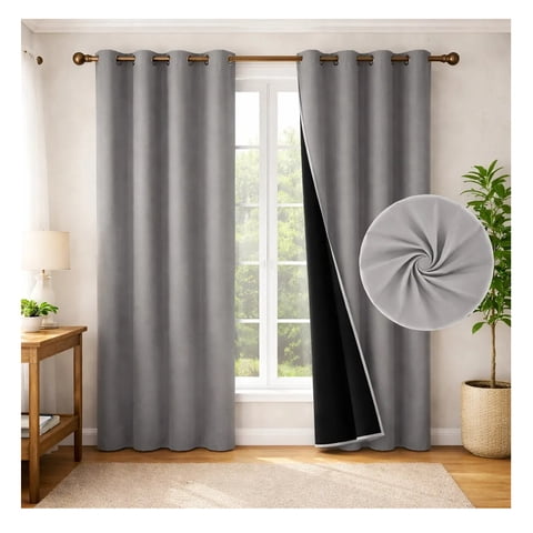 Eoland - Set X2 Cortinas 100% Blackout Termica Black Medida 241X132Cm Gris | Lider Electrohogar