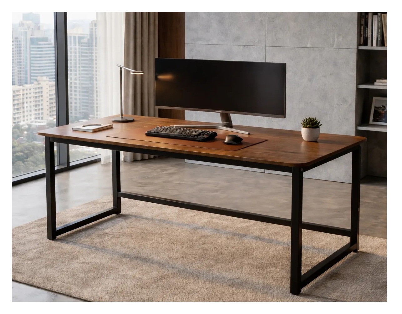 Eoland - Escritorio Metalico 120X60 Computador Oficina Hogar Estudio Marrón/Negro | Lider Electrohogar