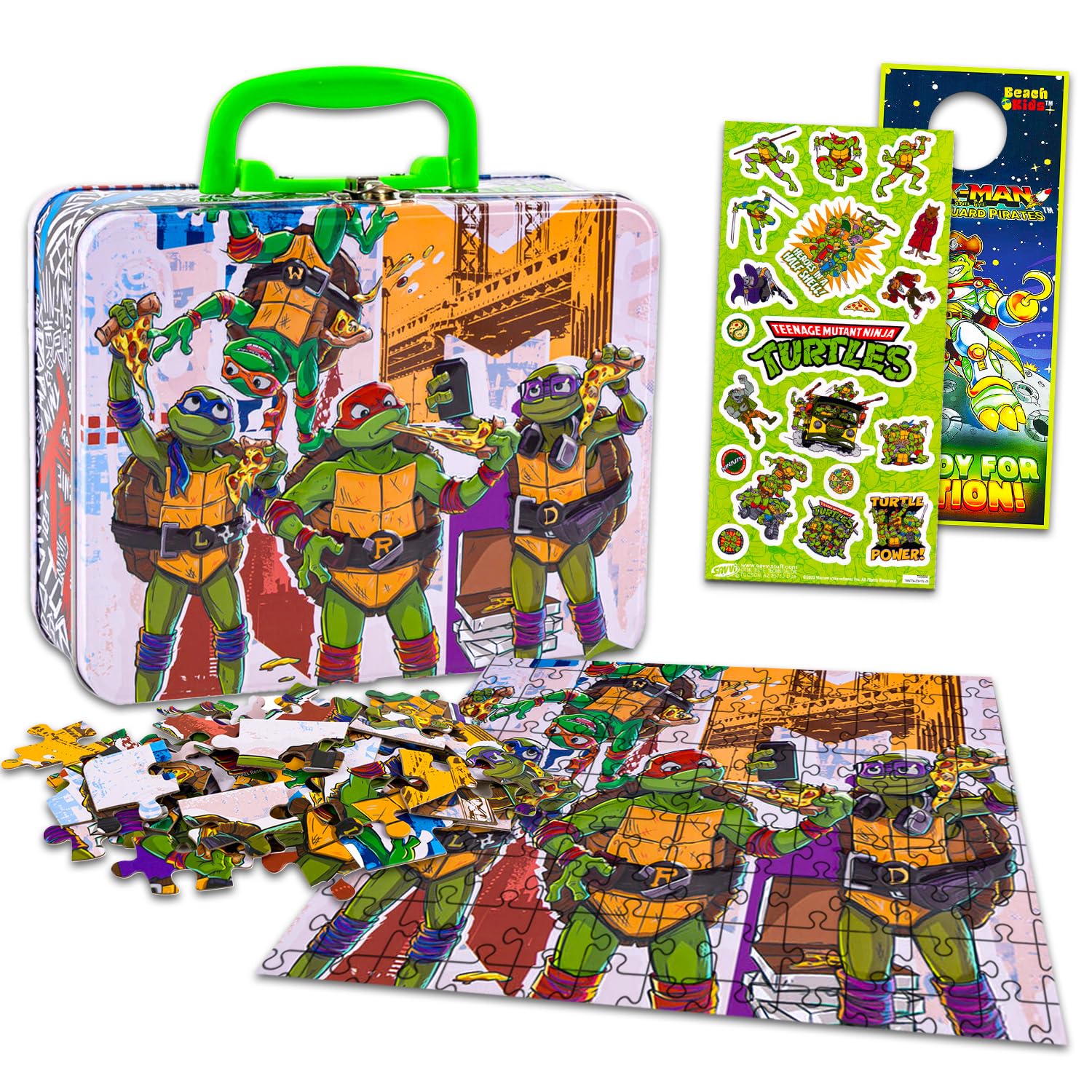 Teenage mutant ninja turtles paquete de rompecabezas de caja de almuerzo de hojalata - lonchera tmnt con rompecabezas teenage mutant ninja turtles de 48 piezas para niños más calcomanías, más | suministros escolares tmnt. este juego de rompecabezas de teenage mutant ninja turtles incluye un rompecabezas tmnt de 48 piezas que mide 15 x 12.5 pulgadas cuando está completo y una lonchera de lata teenage mutant ninja turtles de 7.75 x 3 x 6.25 pulgadas. la lonchera teenage mutant ninja turtles es resistente y espaciosa y puede manejar cualquier número de excursiones, ya sea que estés trayendo el almuerzo o tu nuevo rompecabezas tmnt. este juego de rompecabezas de estaño de teenage mutant ninja turtles tin también funciona muy bien como suministros escolares tmnt, juego de regalo tmnt y más; se adapta perfectamente a cualquier otro accesorio de zapatillas. producto con licencia oficial. el rompecabezas tmnt en juego de lata también viene con pegatinas para el agarre y un colgador de puerta rex-man. - teenage mutant ninja turtles paquete de rompecabezas de caja de almuerzo de hojalata - lonchera tmnt con rompecabezas teenage mutant ninja turtles de 48 piezas para niños más calcomanías, más | suministros escolares tmnt. - este juego de rompecabezas de teenage mutant ninja turtles incluye un rompecabezas tmnt de 48 piezas que mide 15 x 12.5 pulgadas cuando está completo y una lonchera de lata teenage mutant ninja turtles de 7.75 x 3 x 6.25 pulgadas. - la lonchera de lata teenage mutant ninja turtles es resistente y espaciosa y puede manejar cualquier número de excursiones, ya sea que estés trayendo el almuerzo o tu nuevo rompecabezas tmnt. - este juego de rompecabezas de lata de teenage mutant ninja turtles también funciona muy bien como suministros escolares tmnt, juego de regalo tmnt y más; se adapta perfectamente a cualquier otro accesorio de teenage mutant ninja turtles - producto oficial de teenage mutant ninja turtles el rompecabezas tmnt en juego de lata también viene con calcomanías teenage mutant ninja turtles y un colgador de puerta rex-man.