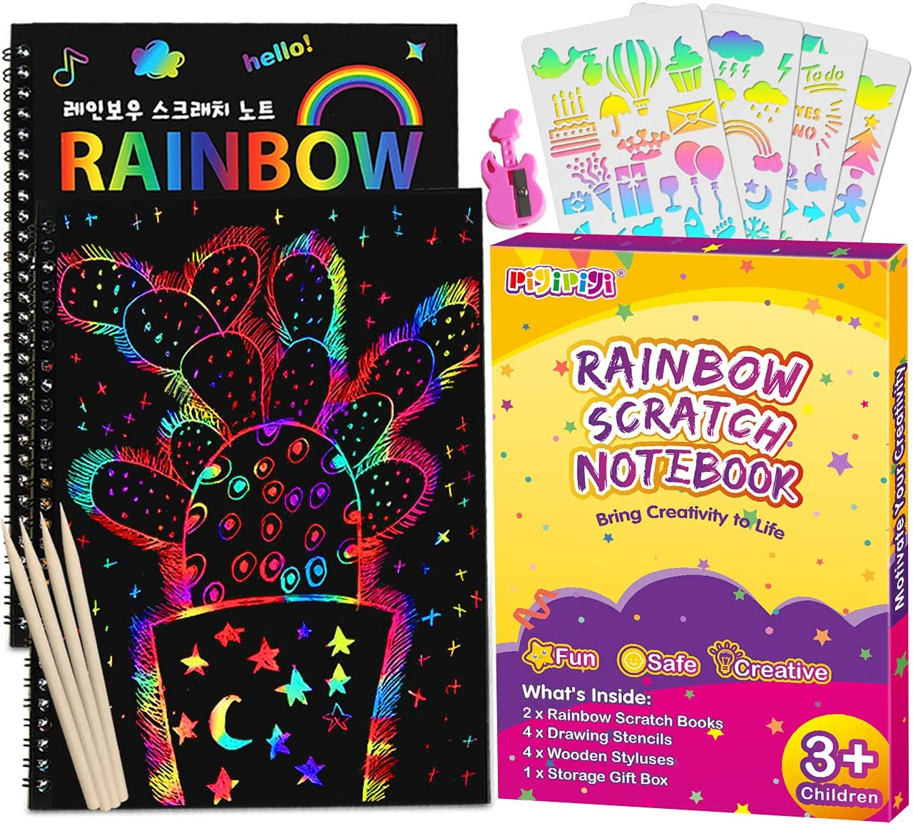 Papel rascar arcoíris pigipigi niños - kit 2 cuadernos rascar suministros arte manualidades papel dibujar hojas mágicas negras cuaderno rascar juguete actividades niñas y niños juego regalo navidad y cumpleaños