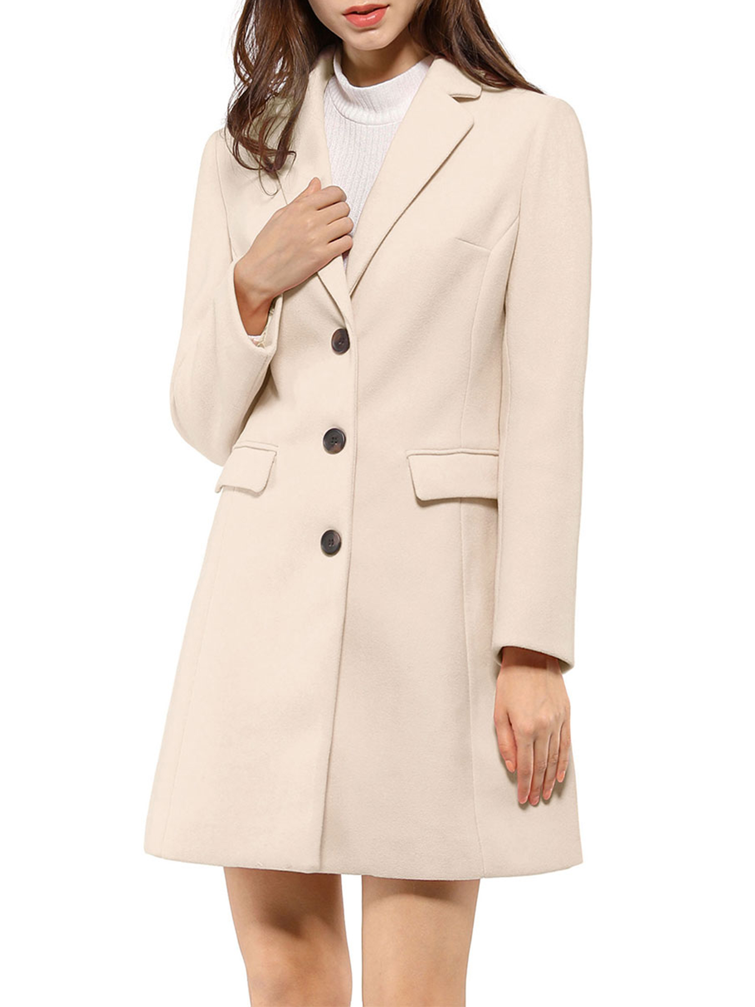 Abrigos De Mujer Inspire Chic Con Solapa, De Manga Larga, De Un Solo Botón, Abrigo De Otoño E Invierno, Color Crema Blanco | Lider Electrohogar