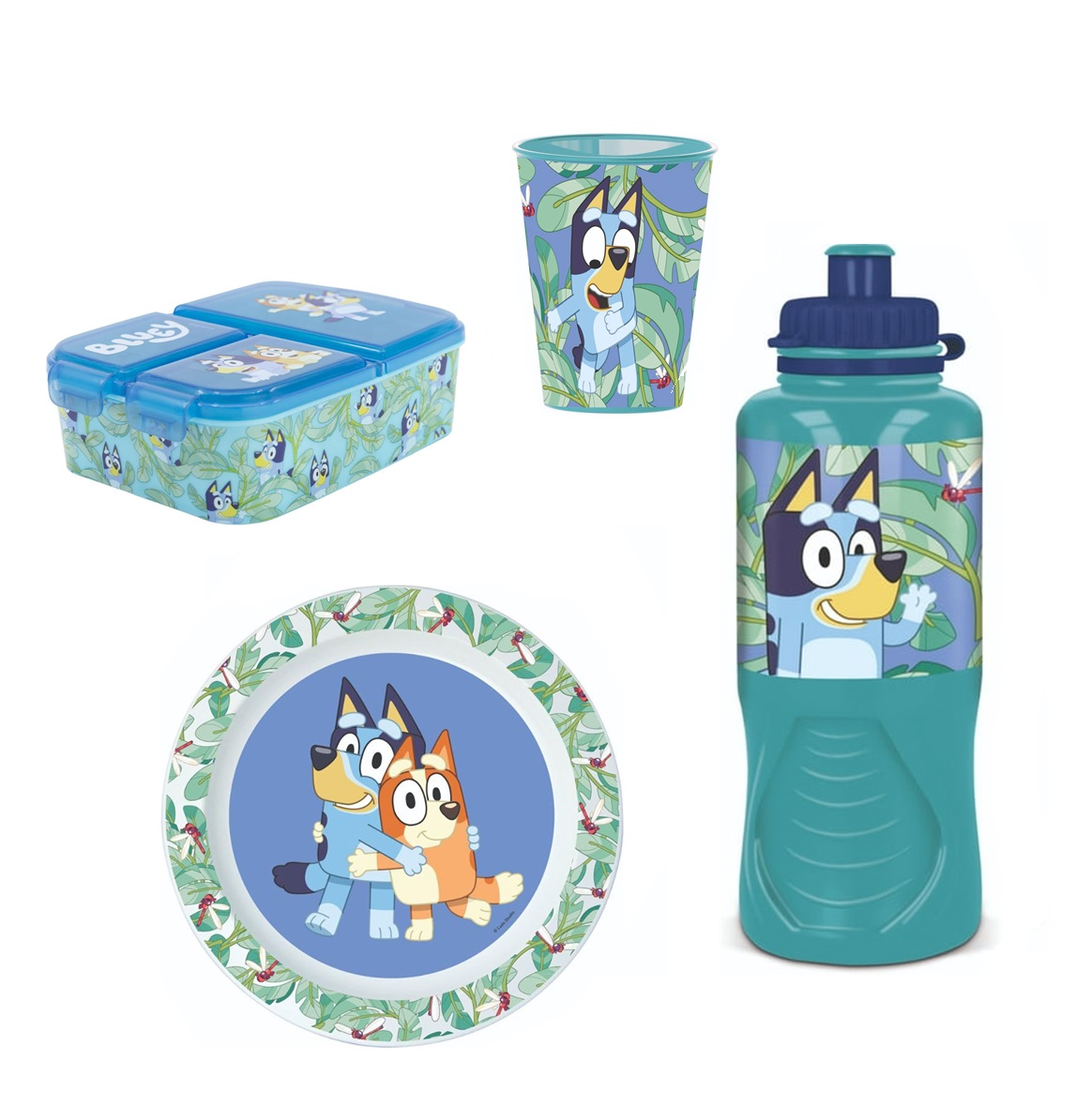 Pack 4 Colacion Bluey Botella 400Ml Porta Sandwich Vaso Plato Piezas | Lider Electrohogar