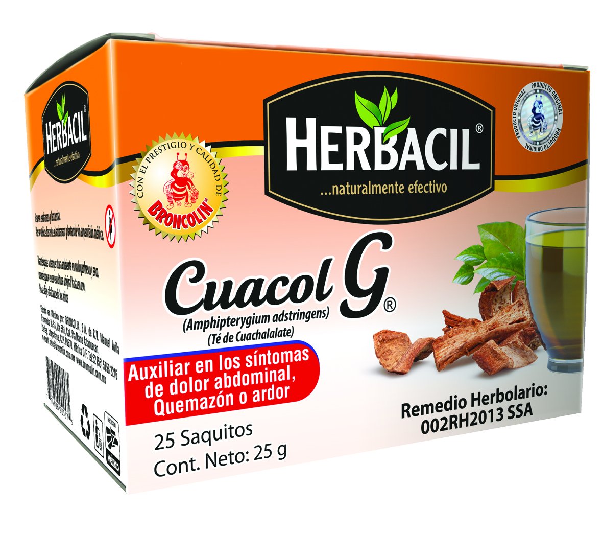 El té de cuachalalato se usa para tratar el dolor gástrico, dolencias gastrointestinales como úlceras, inflamación estomacal y heridas cutáneas. el cuachalalato también es conocido por sus propiedades limpiadoras, así como por sus efectos desintoxicantes dentro del sistema circulatorio. dependiendo de qué tan graves sean sus úlceras, podría picar al principio cuando comenzó a beber el té. el té de cuachalalato también se usa para tratar problemas circulatorios, enfermedades orales, infecciones urinarias, heridas, granos y enfermedades de la piel, problemas hepáticos, enfermedades pulmonares y respiratorias. el embalaje y los ingredientes pueden variar - 25 bolsas - de los creadores de broncolin