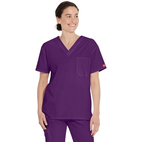 Berenjena Scrub Top Dickies Unisex Con Cuello En V, Talla Grande | Lider Electrohogar