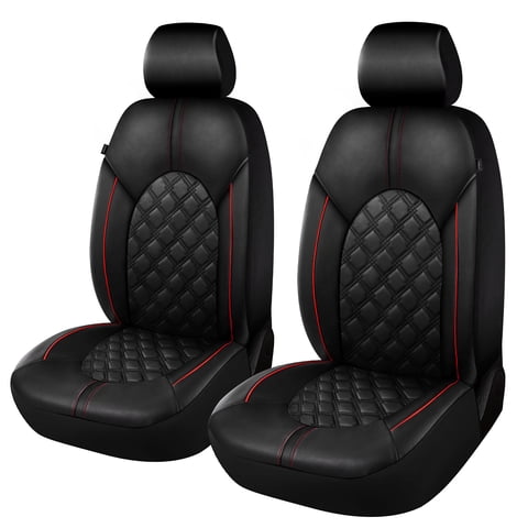 Fundas Para Asientos De Coche Caromop Luxury, Juego Frontal De Piel Sintética, Negro/Rojo | Lider Electrohogar