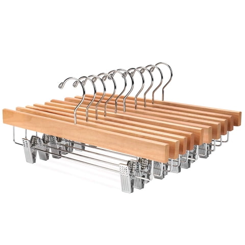 Perchas Para Pantalones Amber Home De Madera Natural, Paquete De 24 Con Clips