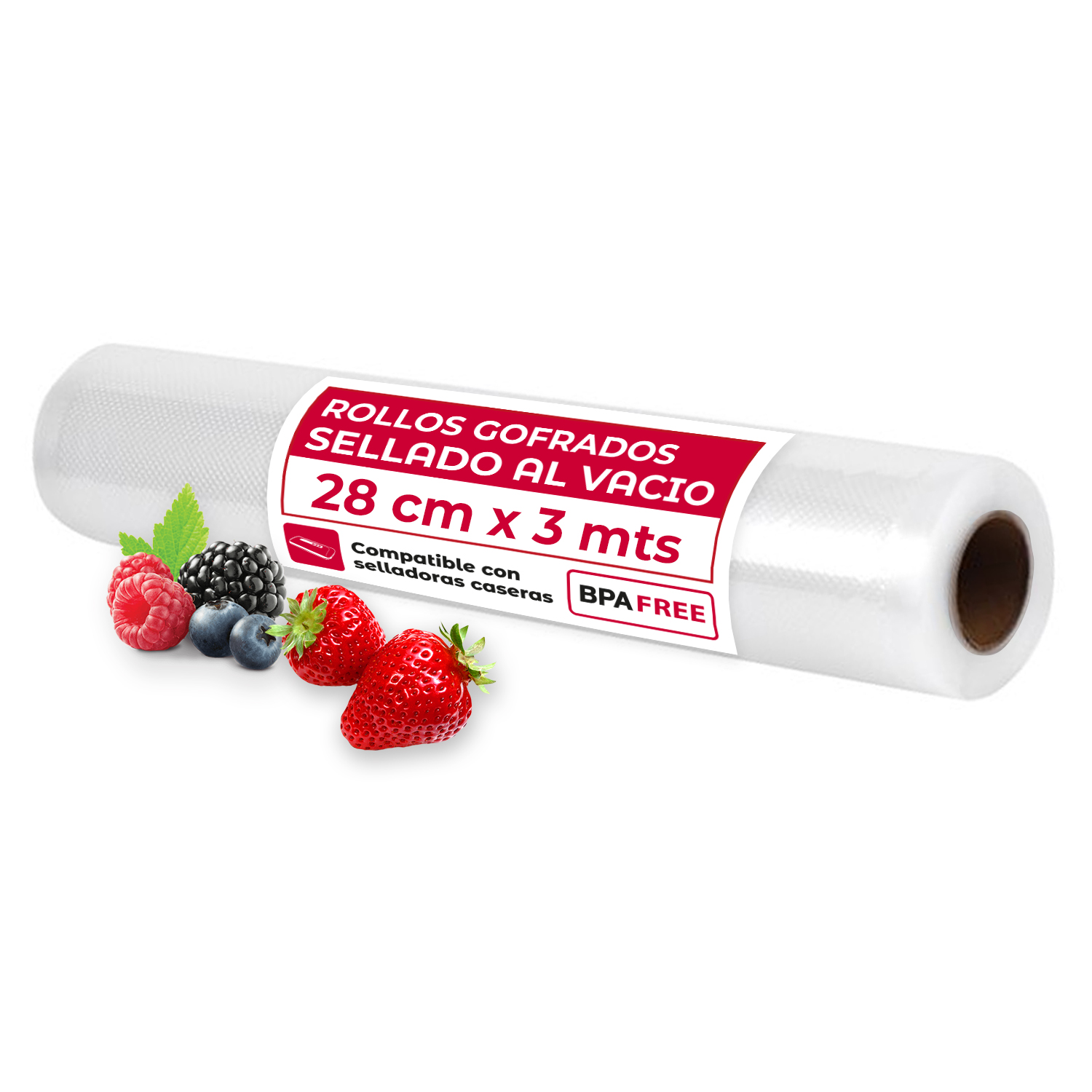 Rollo gofrado para sellar al vacío 28cm x 3mt. este rollo te permite hacer la bolsa a la medida que desees. apto para selladoras caseras. sin bpa.