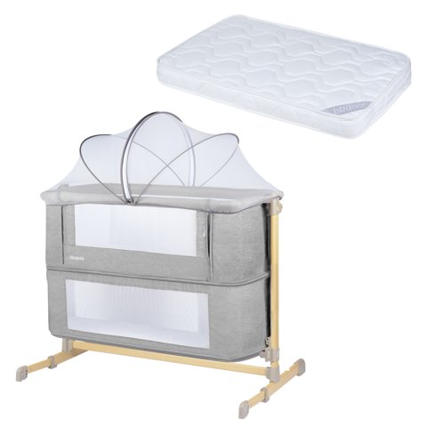 Bbqool - Cuna Colecho Aura Grey + Colchón | Lider Electrohogar